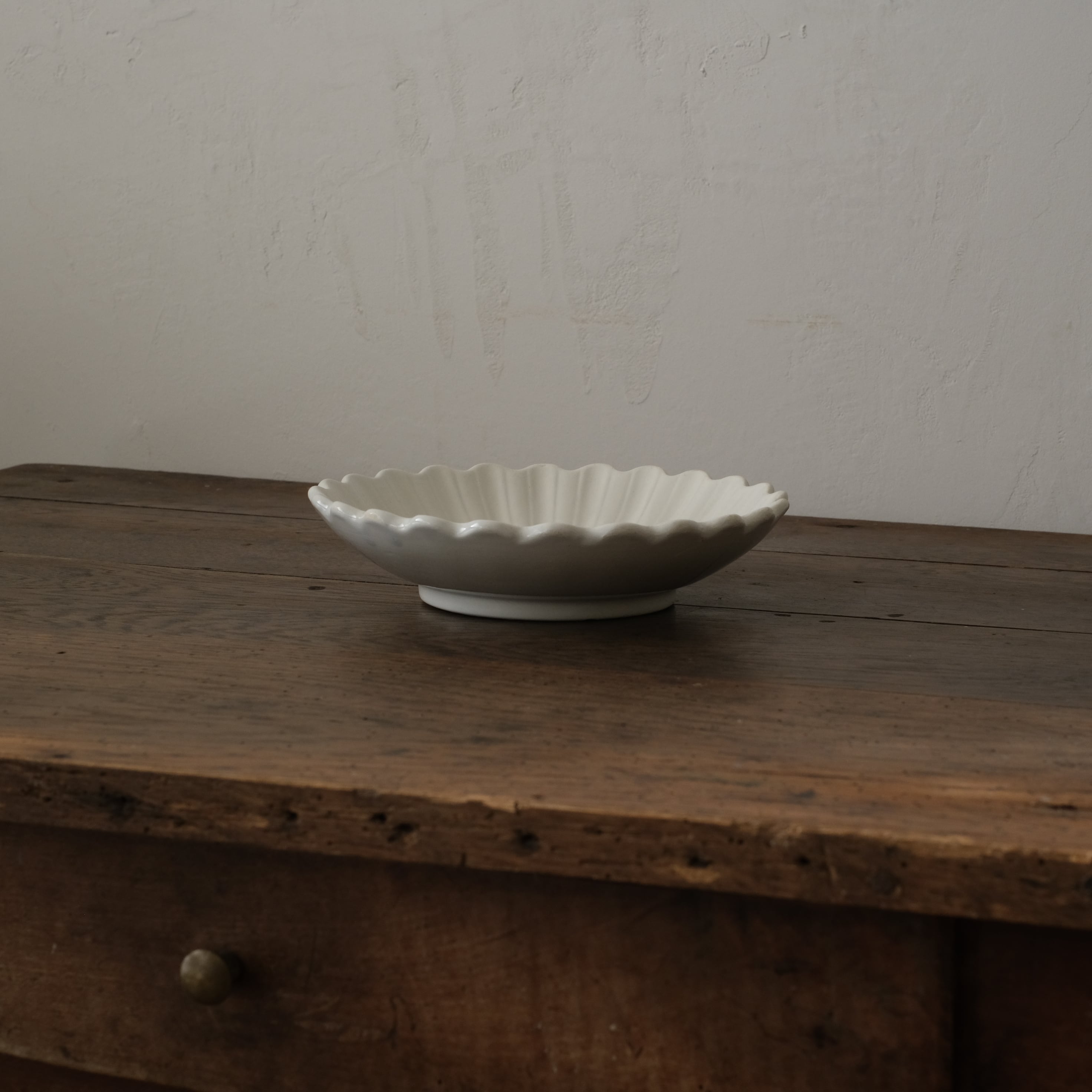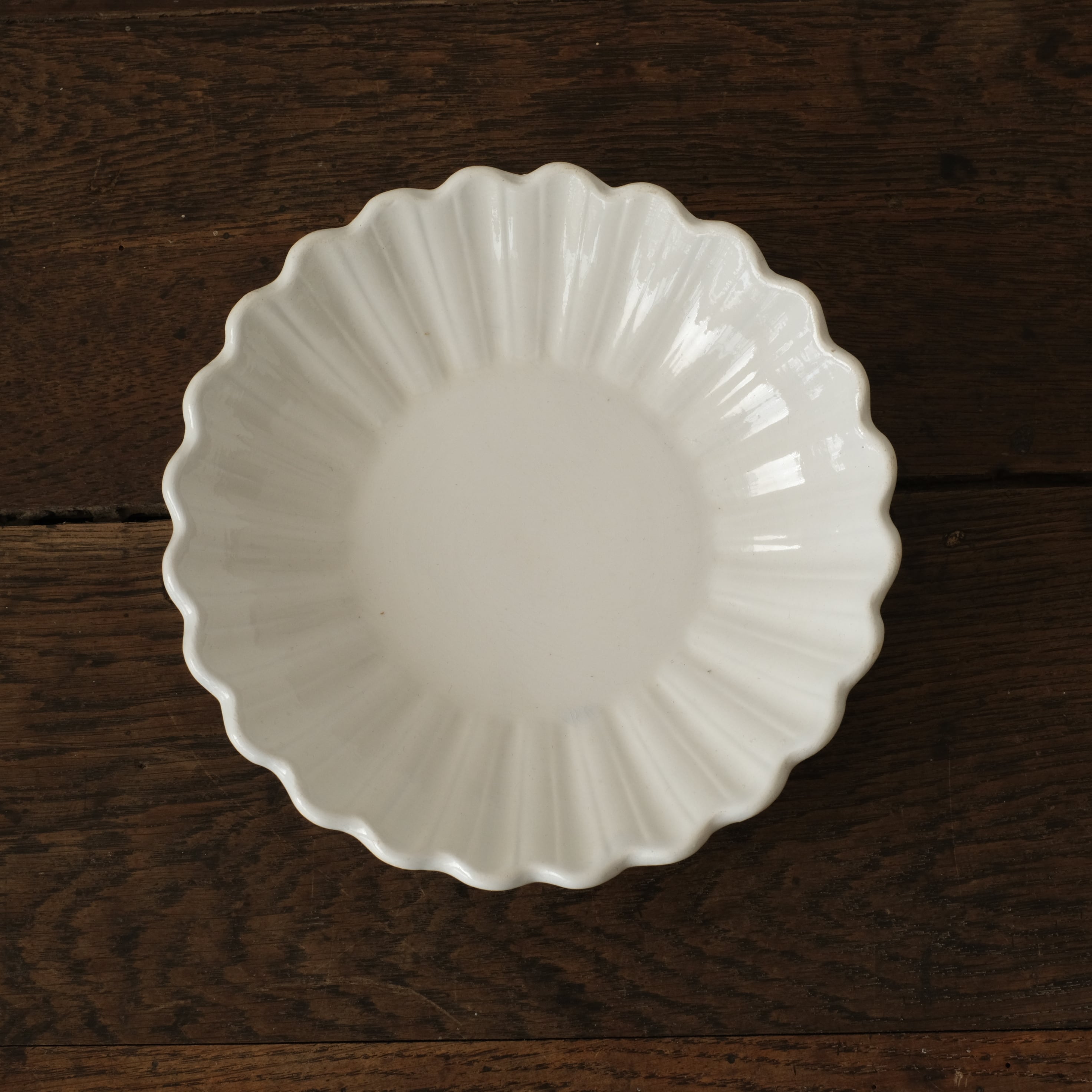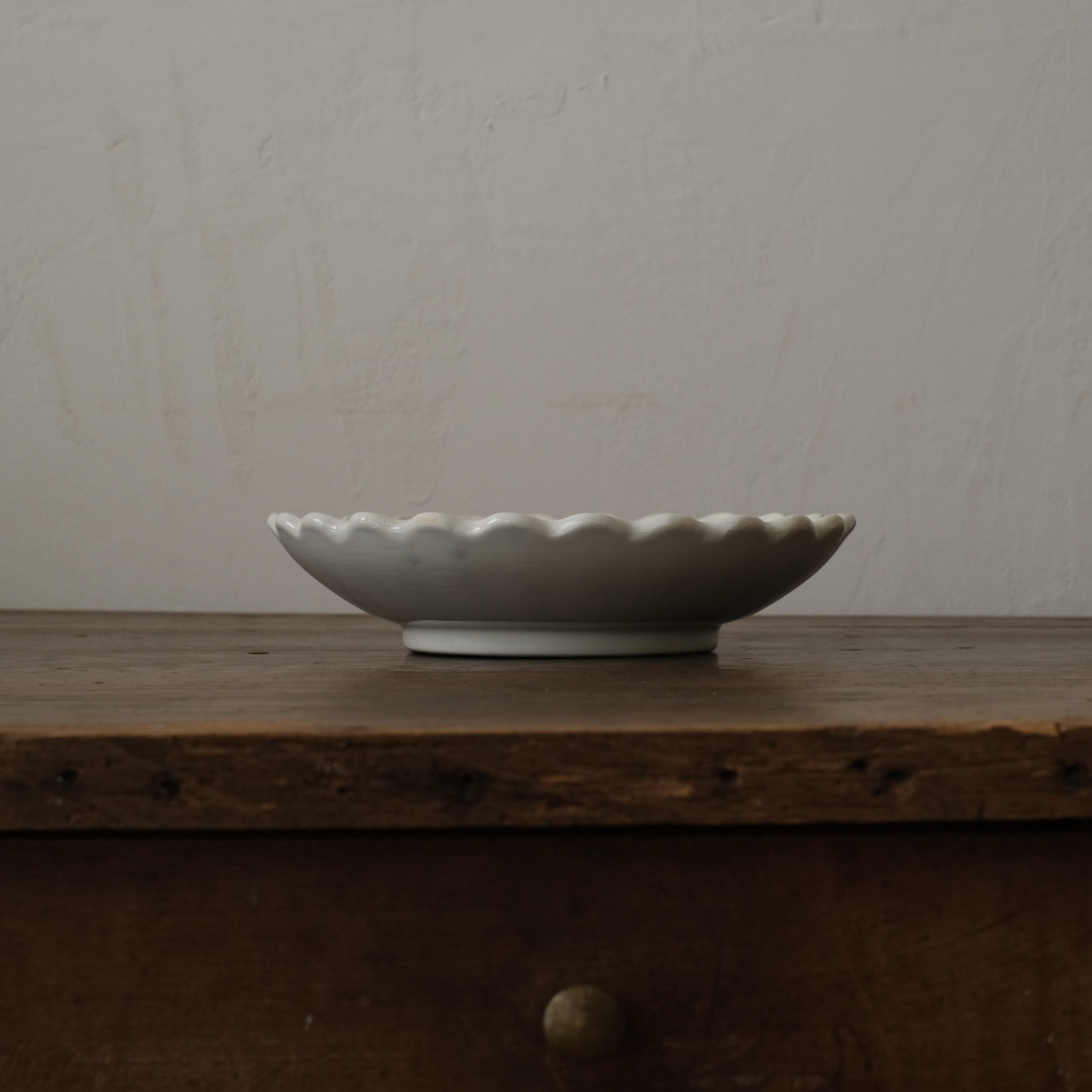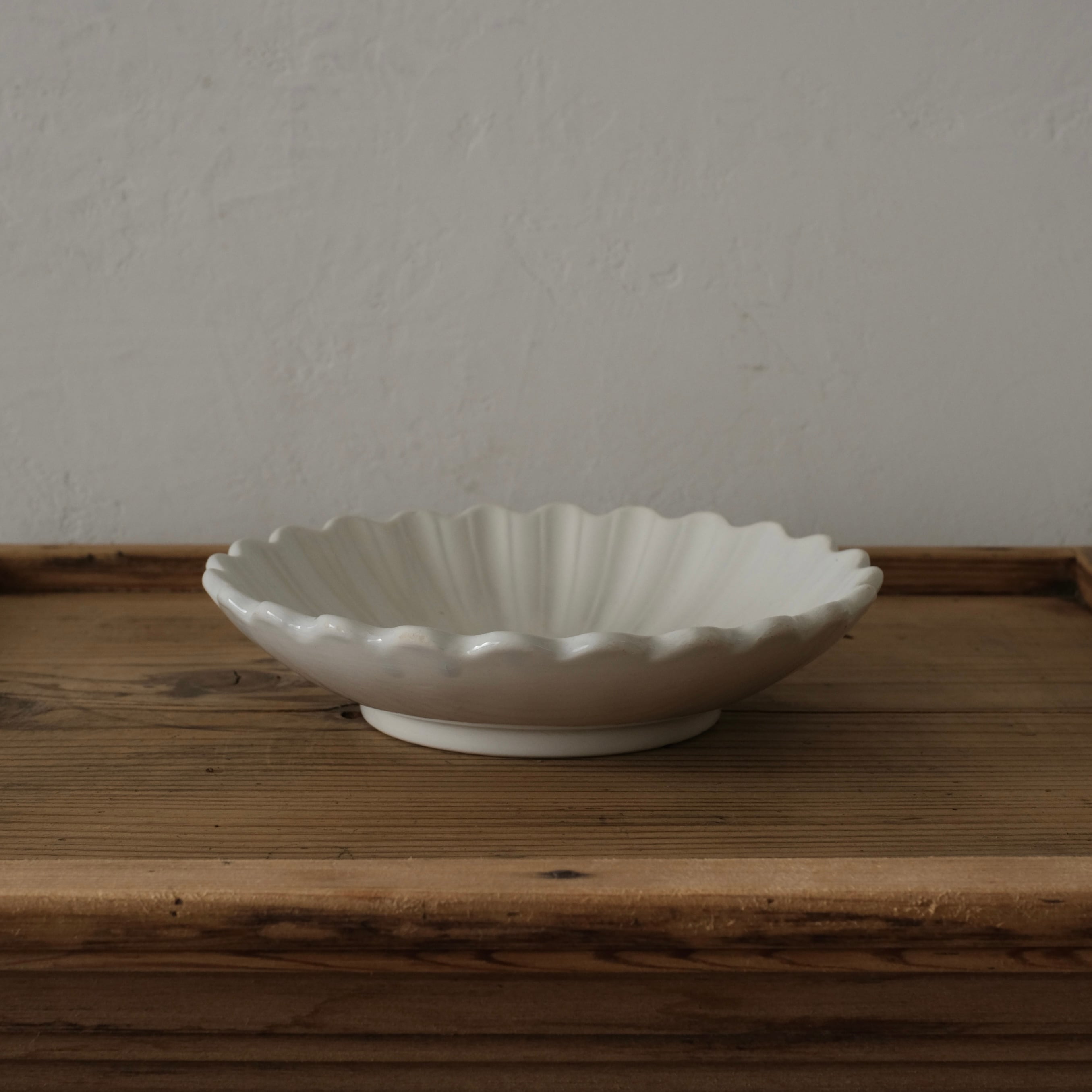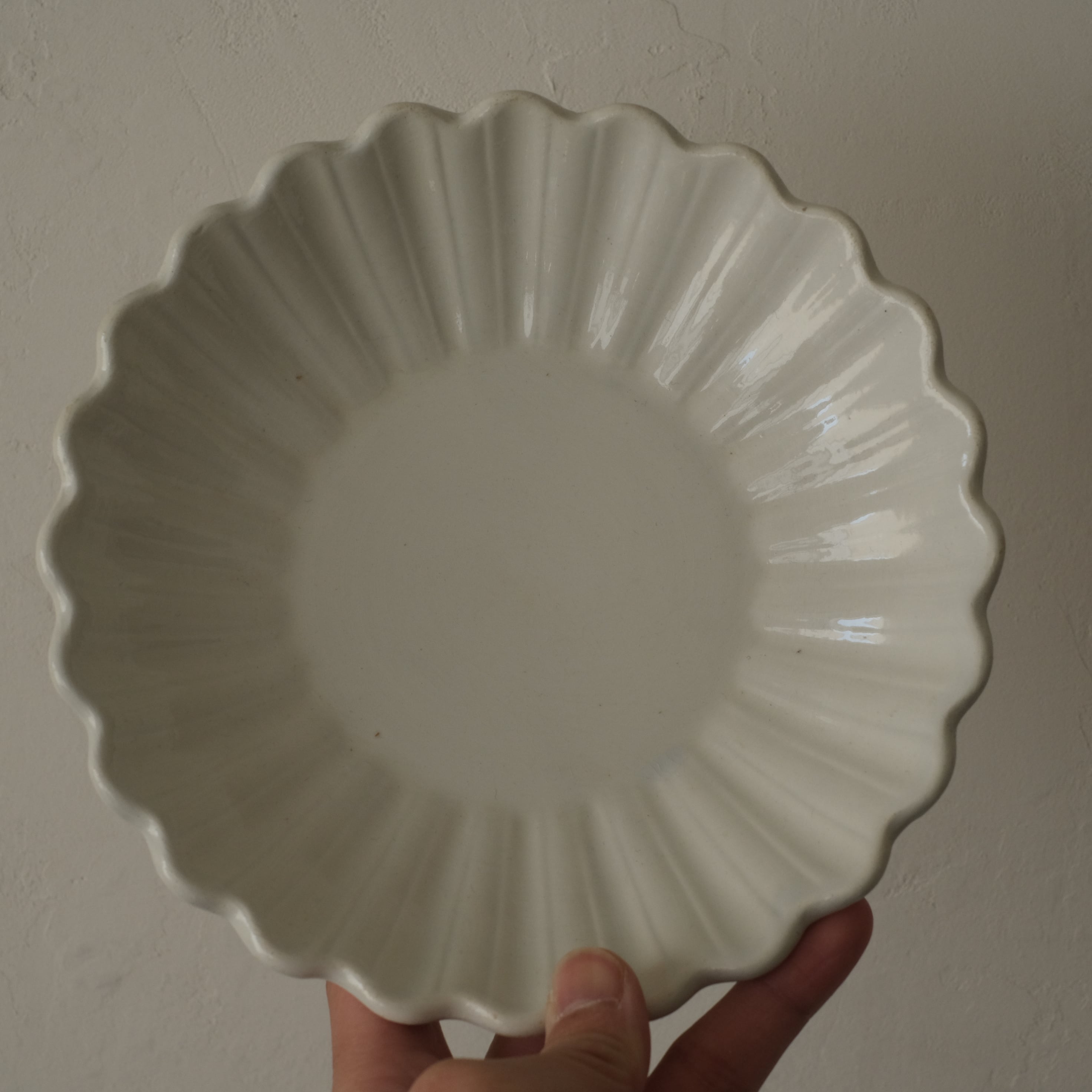 やわらかな乳白色の地肌が美しい輪花皿です。