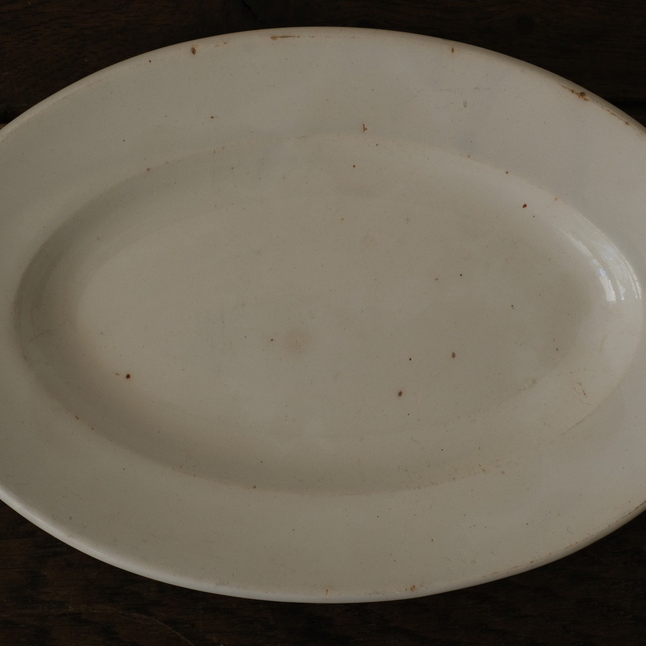 経年に伴う釉薬の削げやスレ、カトラリー跡、色の染み込みがございます。
