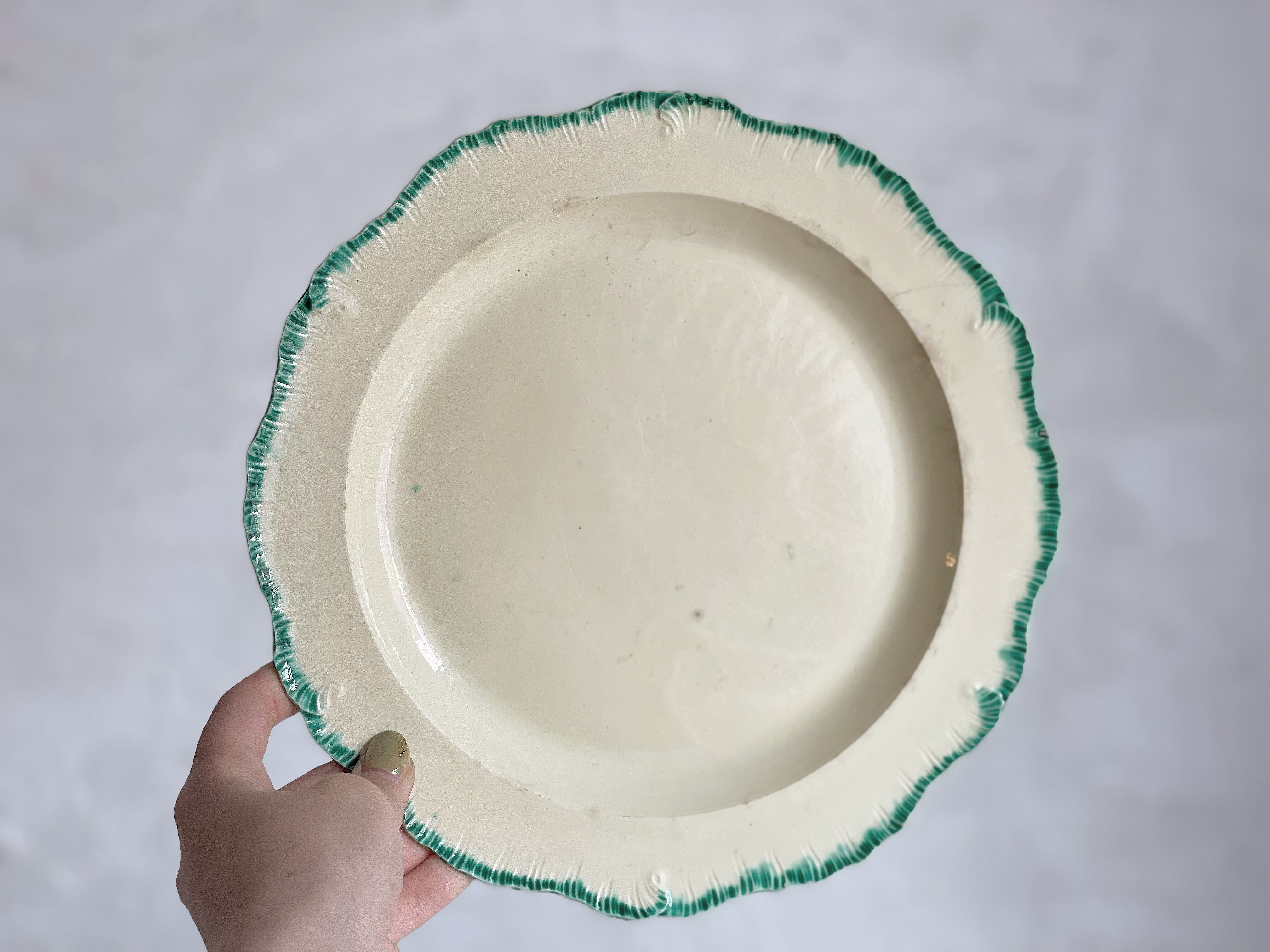 リムを縁取るグリーンとクリーム色の組み合わせが可愛らしい一皿。
