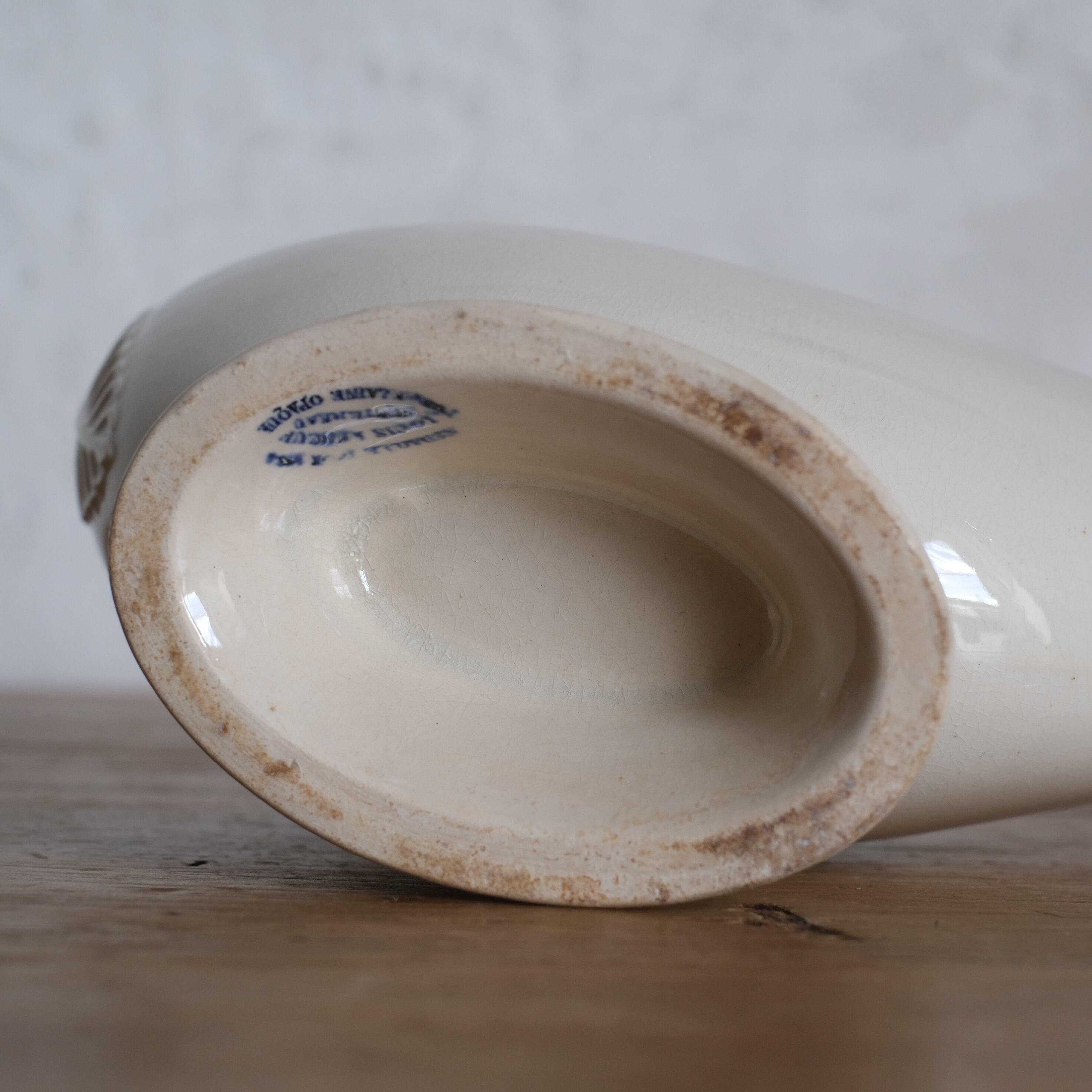注ぎ口部分の先端にスレ、側面にシミあり。